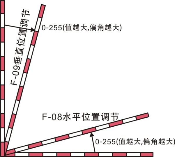 1、通過(guò)F-08/F-09調(diào)節(jié)水平位置、垂直位置示意圖