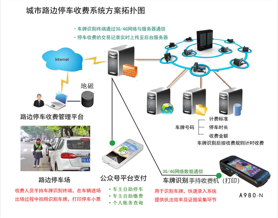 該系統(tǒng)平臺預(yù)留拓展接口,可以實現(xiàn)與城市監(jiān)管平臺及城市交通車輛管理部門監(jiān)管信息對接,是實現(xiàn)城市管理與交通車輛管理現(xiàn)代化的重要環(huán)節(jié)。通過運營商網(wǎng)絡(luò)或無線寬帶網(wǎng)絡(luò)技術(shù)的應(yīng)用,實現(xiàn)信息源的采集,保證對任一占道停車場實行全區(qū)域、全時段狀況的